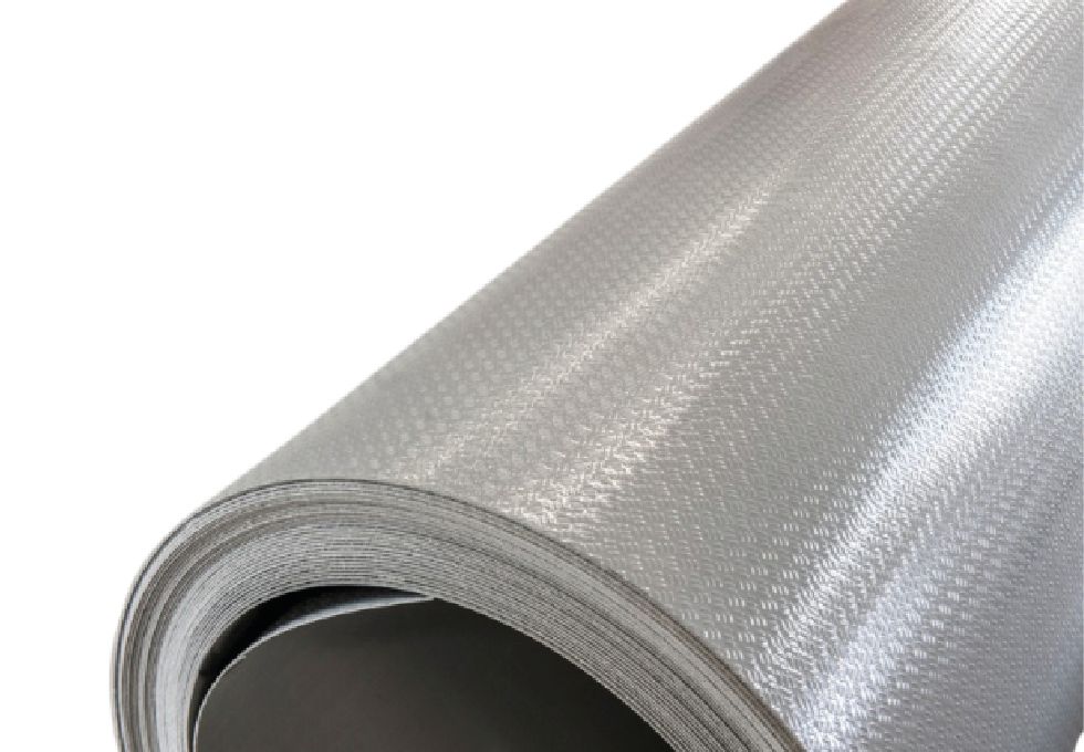 Viene con un acabado texturizado (imitación de aluminio - gofrado), y se puede aplicar como recubrimiento de pisos, para implementos viales, construcción civil, transporte, así como tambien para proyectos y ambientes que requieren la máxima higiene con el mínimo mantenimiento, asegurando la ausencia de hongos y bacterias.